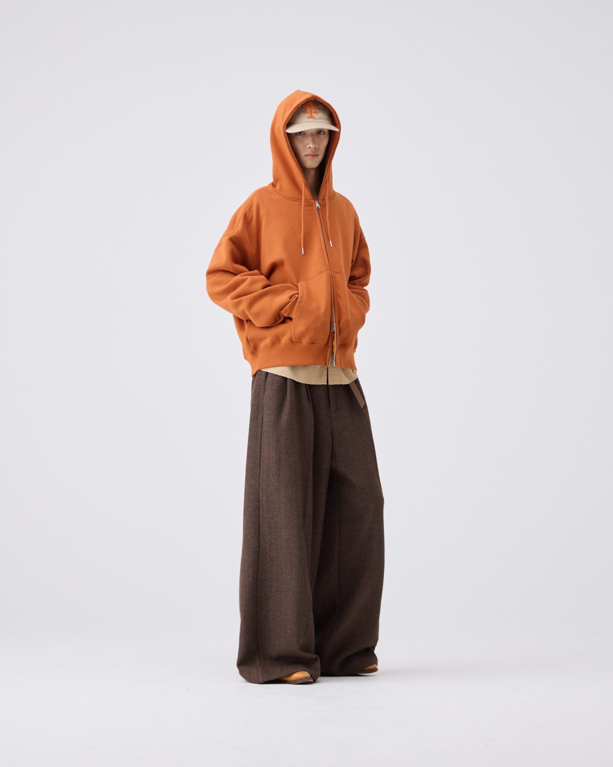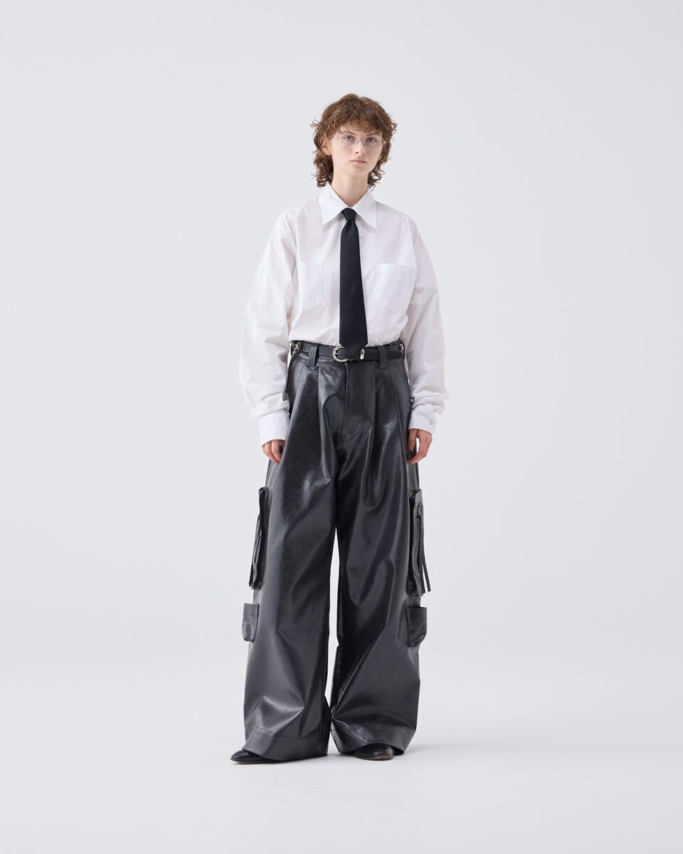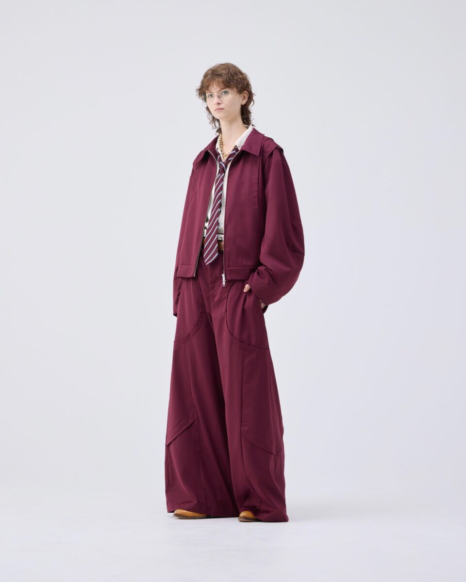 Wide straight curve tuck trousers -