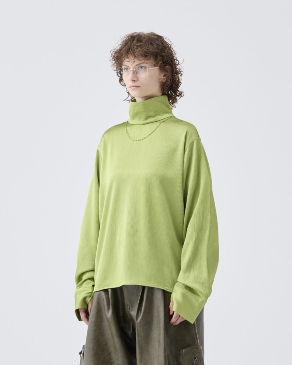 Striped crepe high neck top -